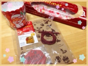 100円ショップで買った、クリスマスラッピングを使って、ラッピング!