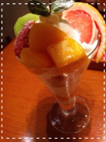 休憩を兼ねて、カフェでマンゴーのパフェ食べたょ~。