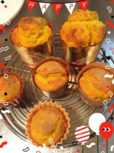 カボチャペースト入りの、カボチャカップケーキだよ~(^-^)