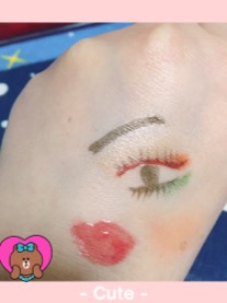 下まぶたのグリーンの部分に、キャンドゥのグリーンのアイライナーをひき、