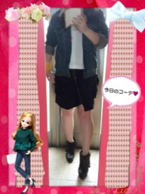 デニムジャケット+白Tシャツ+変形ミニスカート~。