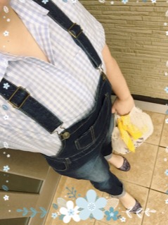 ・・ということで、白×ブルーのチェックシャツ+オーバーオール。