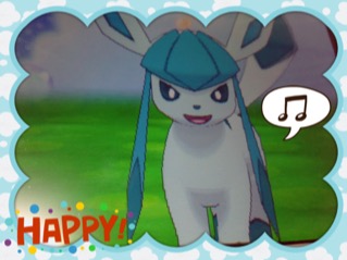 名前ゎ「スワロ」。グレイシアが出ると、キラキラ雪の結晶が飛んで、