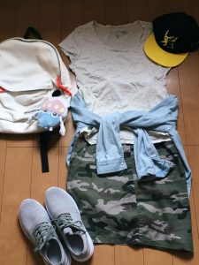 今日のコーデのポイントゎ、湿気でもふった髪を隠すためにかぶったキャップ!