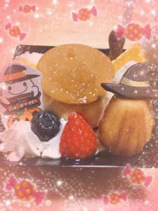 ハロウインスイーツな、プリンアラモード食べたよ☆