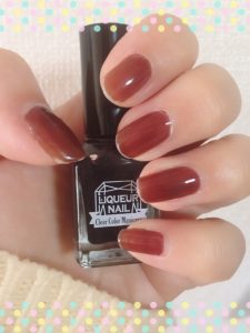 塗ると、このよーに赤っぽい茶色になります。シックですね☆
