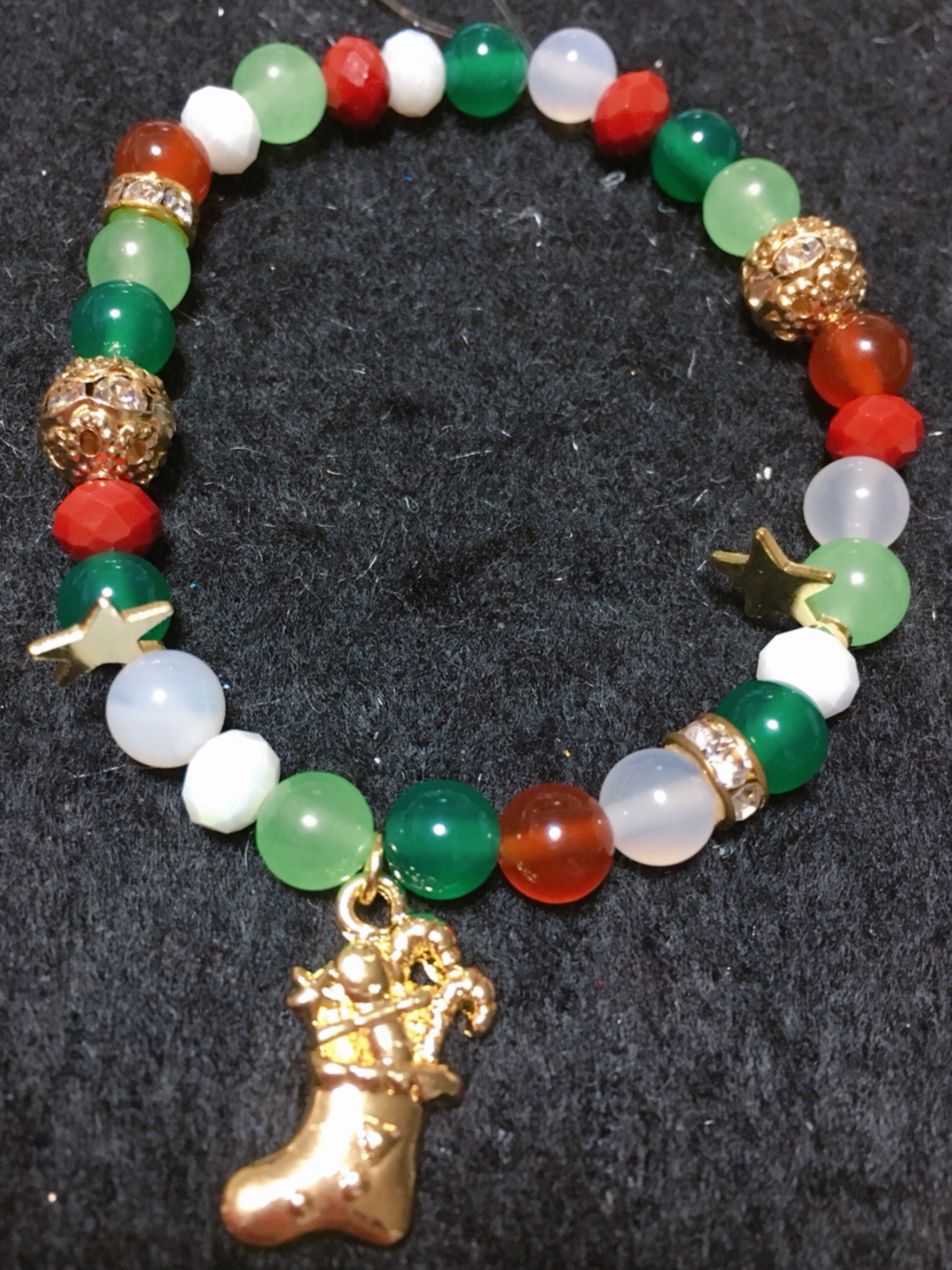 - 「ドリームオブクリスマス」。クリスマスカラーのメノウ、ロンデルボールで楽しいクリスマスをイメージしました♪