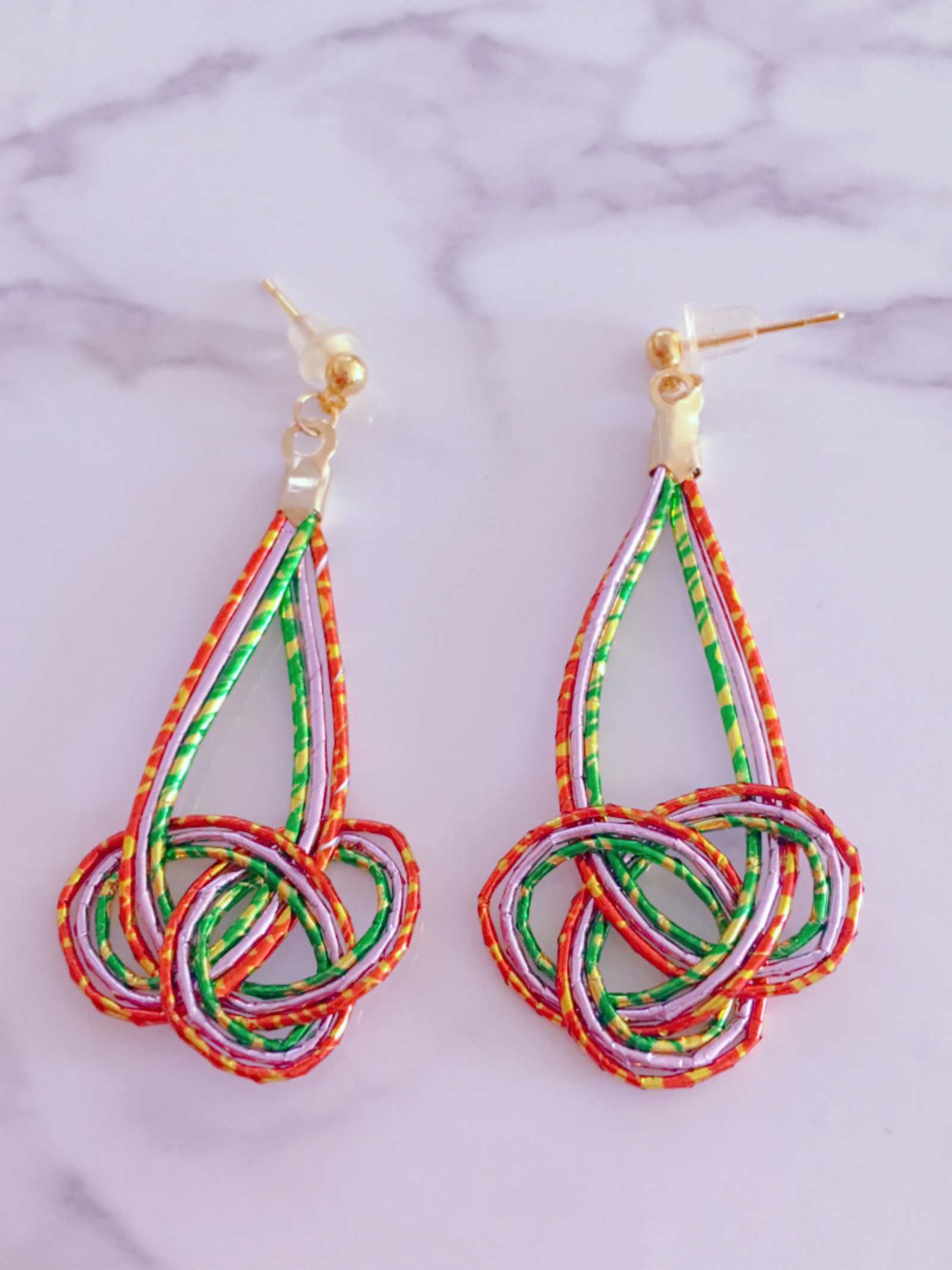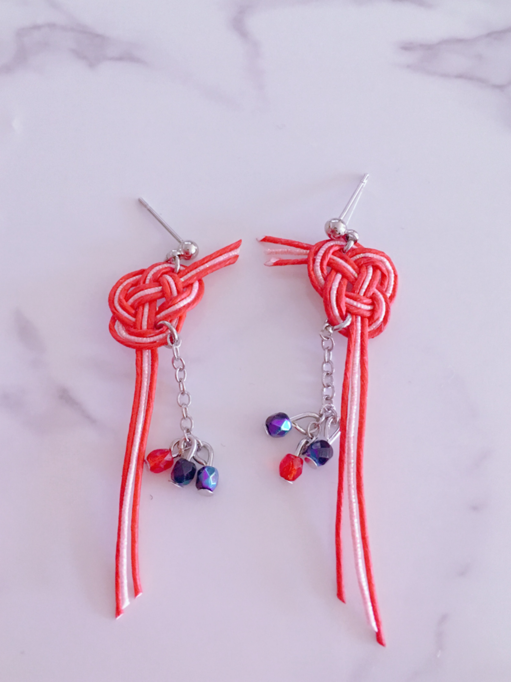 - 水引ピアスシリーズ。淡路結びのシンプルピアスです。初詣につけていきました☆