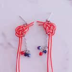 - 水引ピアスシリーズ。淡路結びに、チェコビーズを合わせてみました。ゆらゆら揺れるチェコビーズがキラキラしてきれいですよ~。