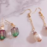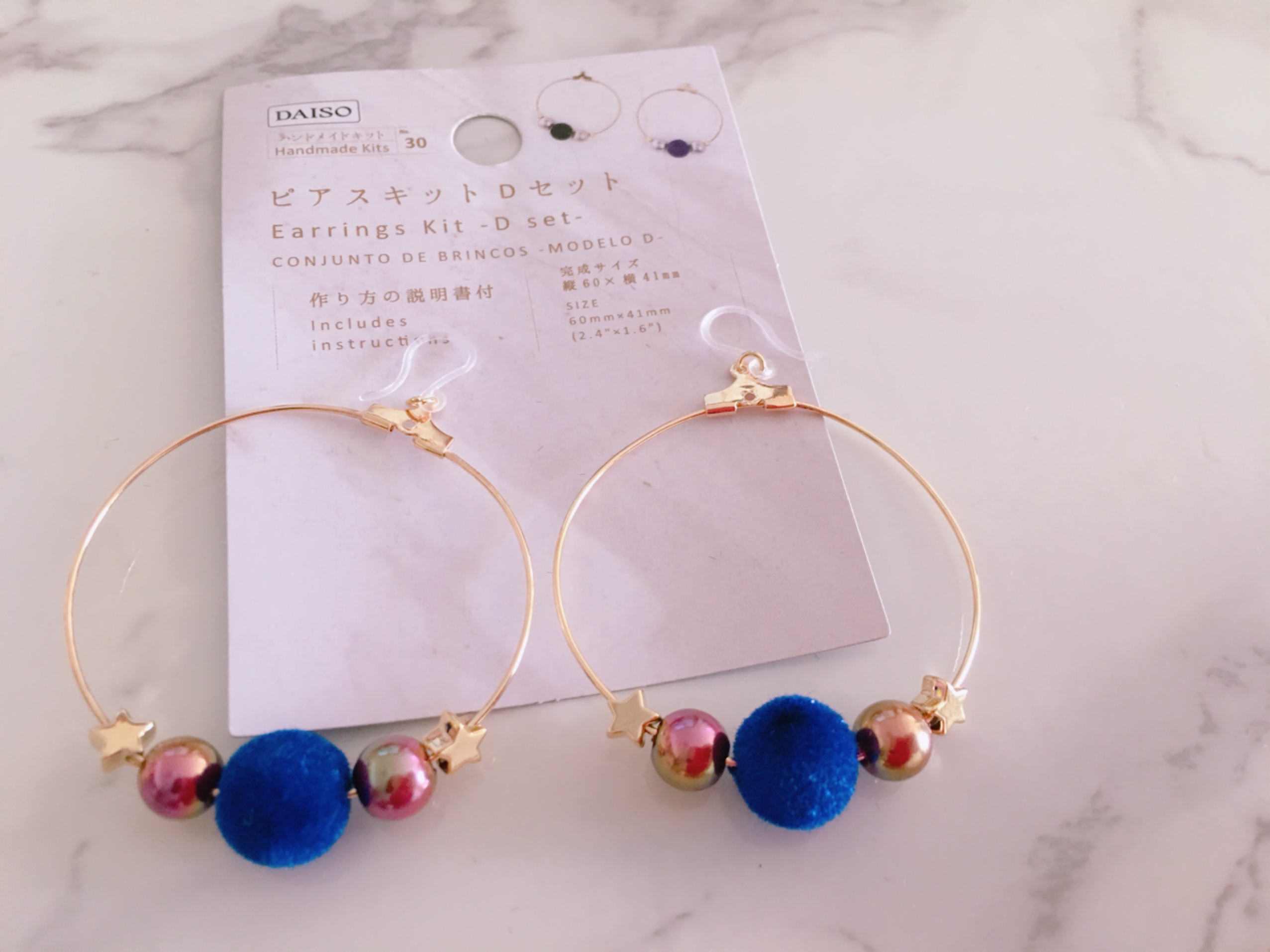 - ダイソーのハンドメイドピアスです。両サイドは偏光カラーのガラスパールを使ってみました☆