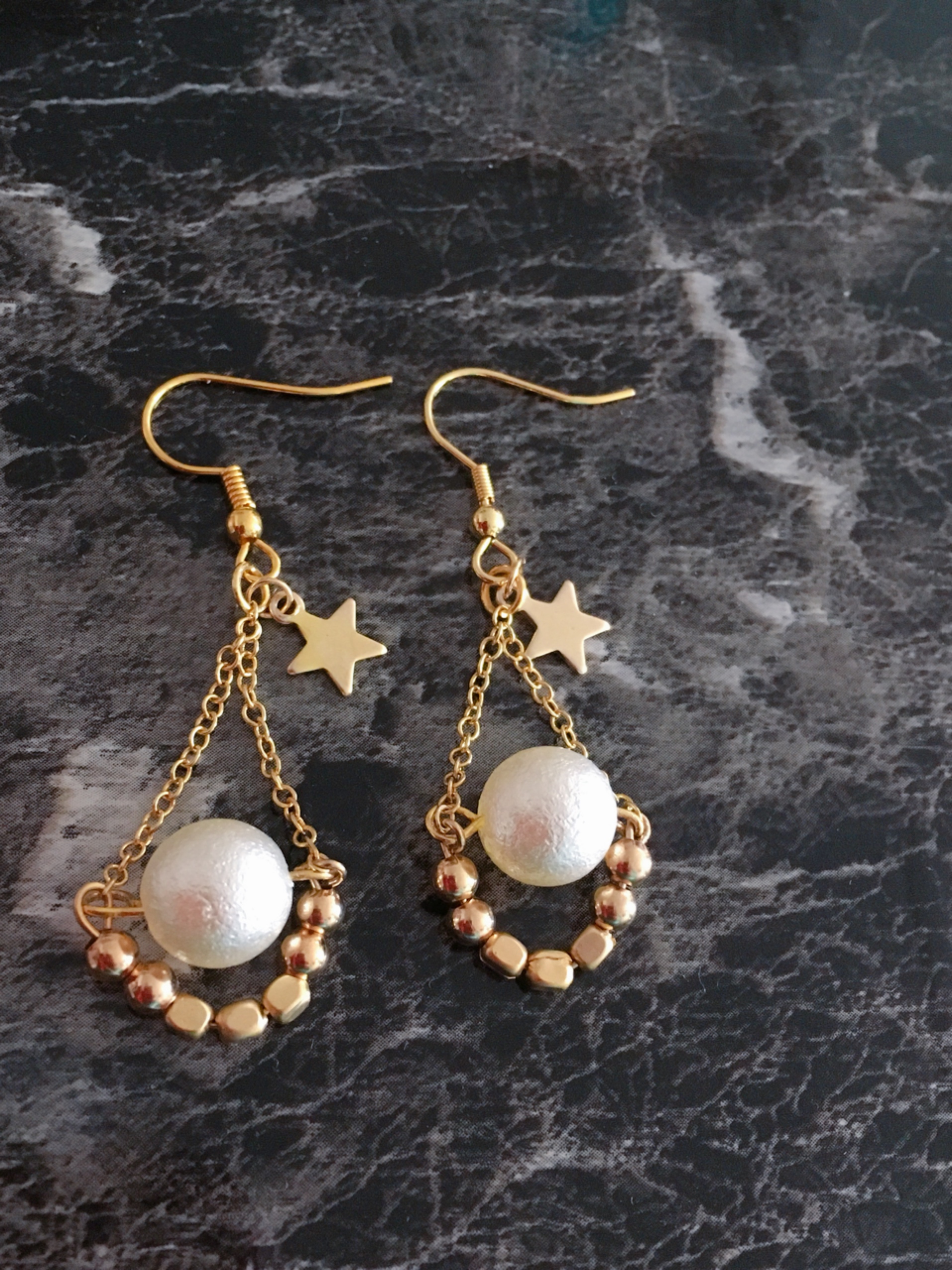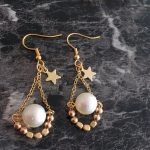 - 月のゆりかご。コットンパールとメタルビーズです。雑貨屋さんだったかで見かけたデザインがかわいくて、似たような感じのを作ってみました♪