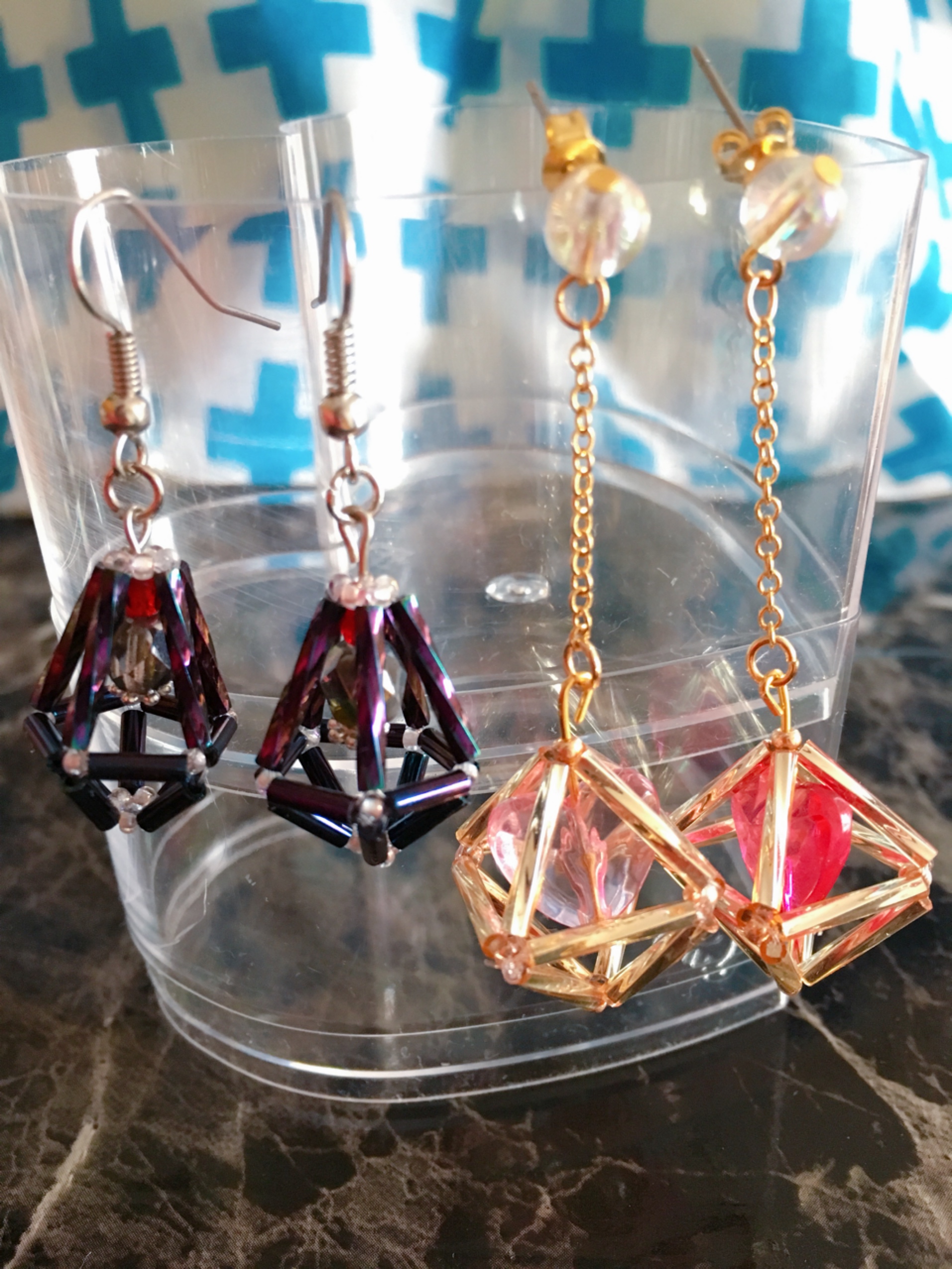 - 「ヒンメリ」シリーズ。こちらもパーツクラブのレシピを参考にしてます。ツイストビーズに、真ん中にハートのビーズを入れてます。わたしのハートは、金色の檻に閉じ込めてあるの☆
