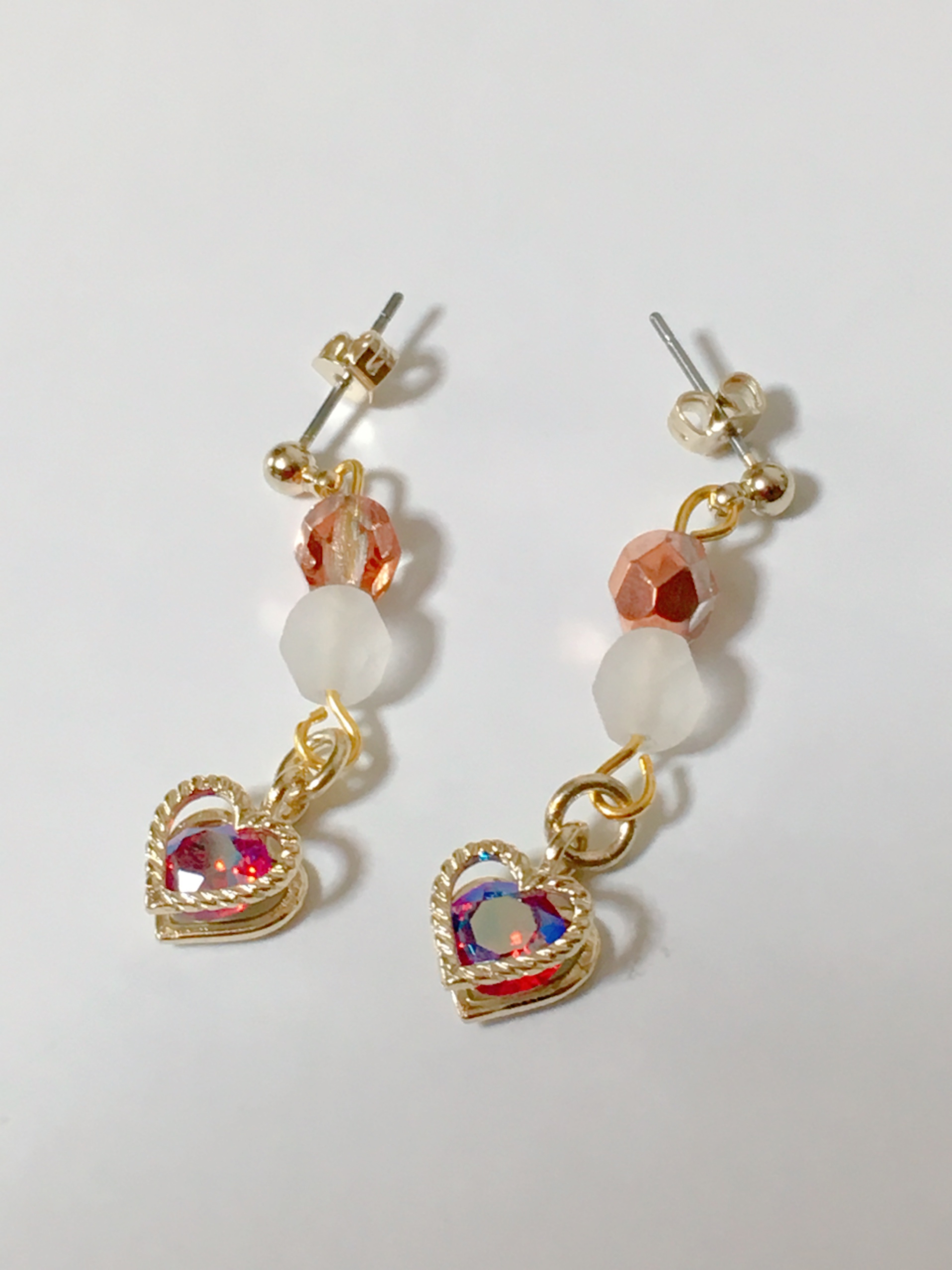 - 岡山に滞在している時に作りました。スワロフスキーのスカーレット色に一目惚れ。パーツクラブのハート型ジュエリークリップを使って、シンプルに色が引き立つようにしました。これを作っている時、すごく寒くて心も悲しみに沈んでたなあ。