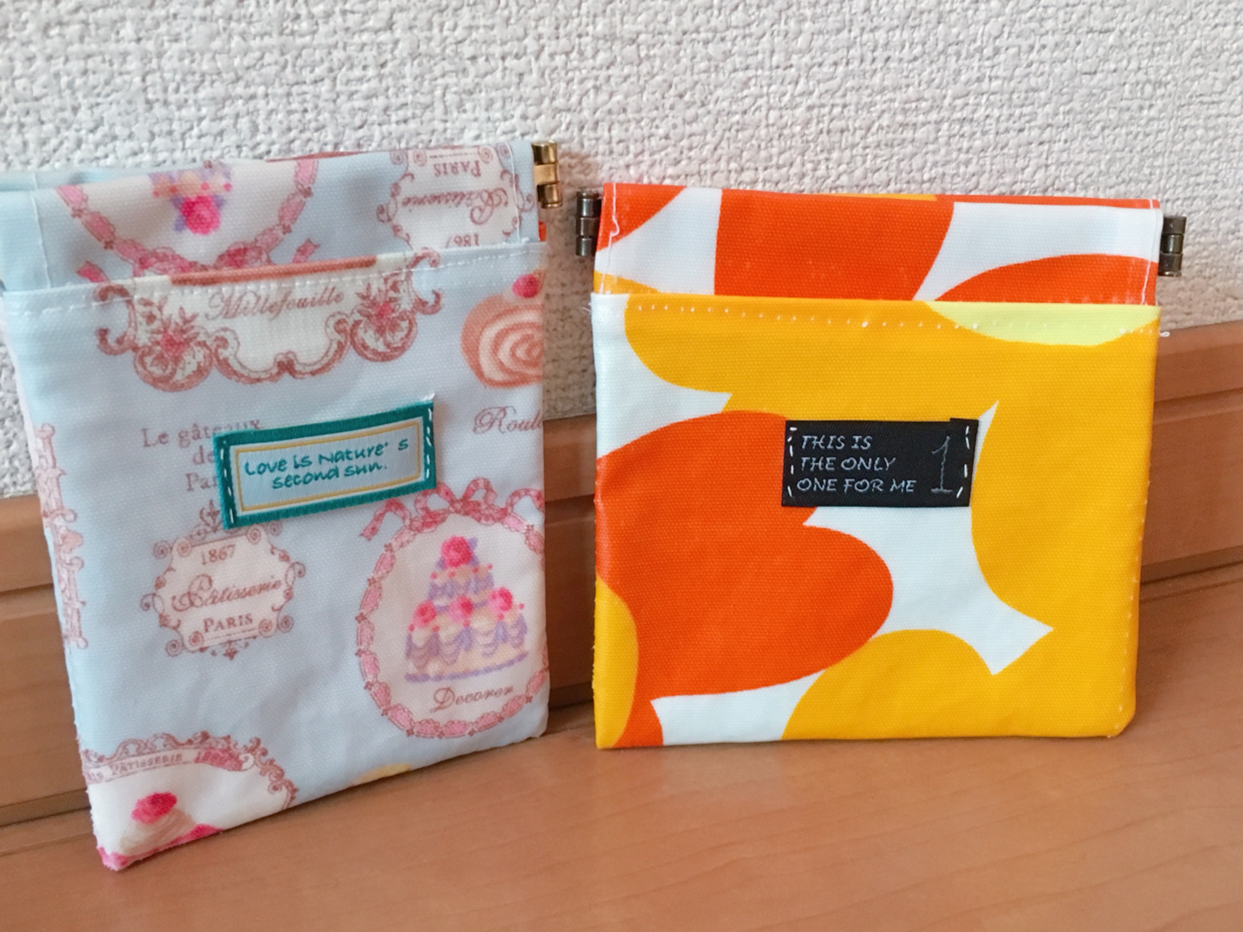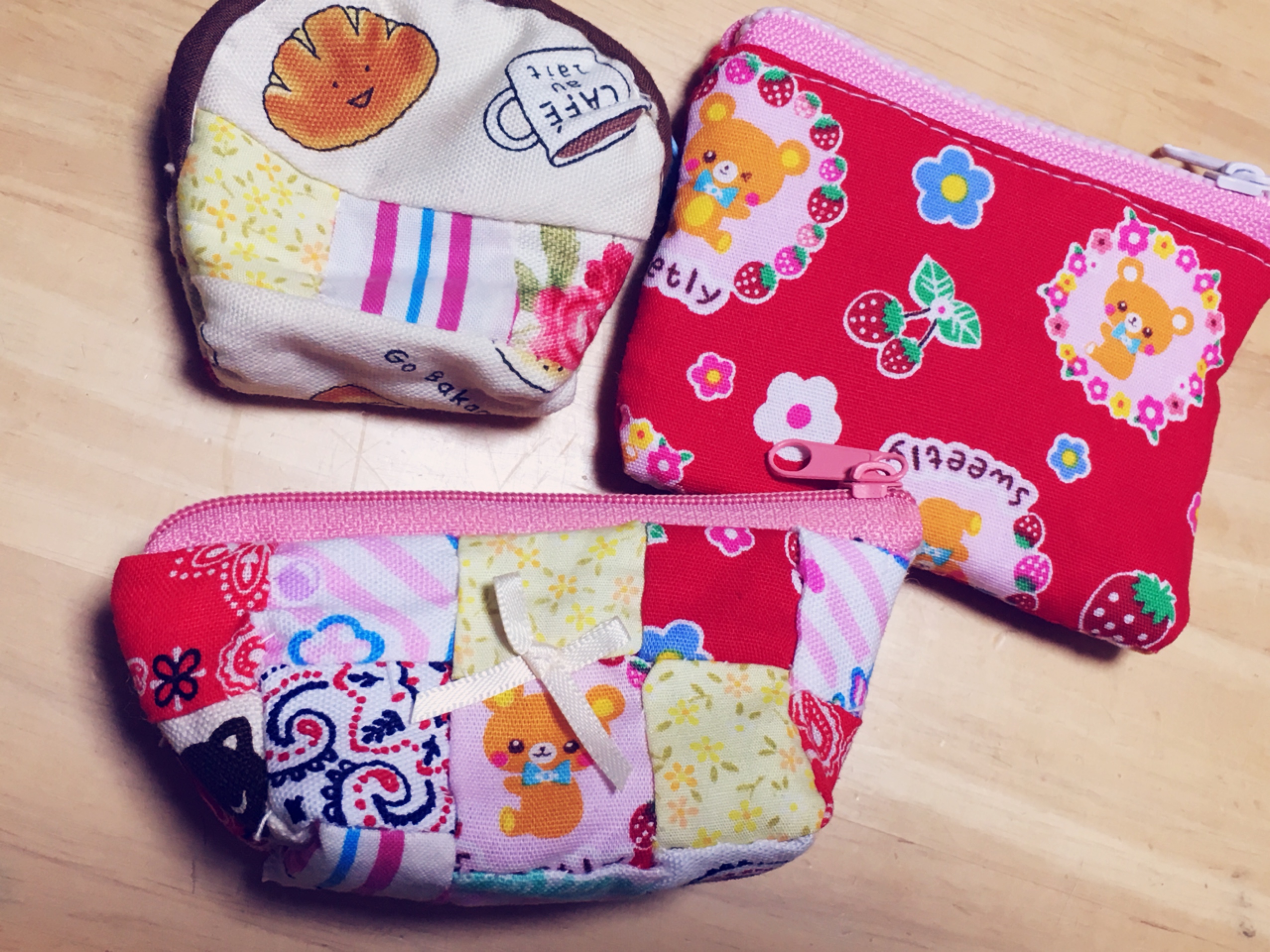 レシピサイトを見て作ってみました~。どちらもハギレサイズでできるミニバックです。