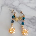 - 「夜星」。スワロフスキーと星のチャームのピアス。パーツクラブのレシピ。