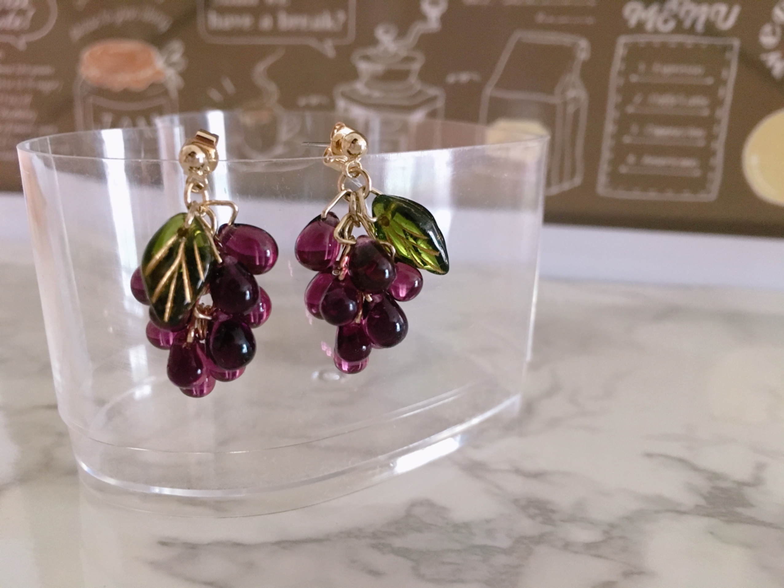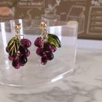 - 果物シリーズ。チェコビーズのしずく型を使って、ぶどうを作りました。ワイン好きな友人にプレゼント☆