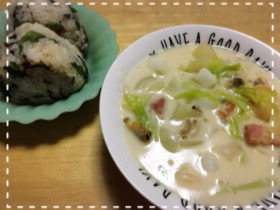 テキトーに冷蔵庫にぁった材料で、クラムチャウダーつくったょ☆彡