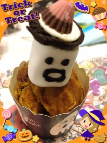 ケーキの上にへたくそなおばけの飾りのせたけど、ほめてもらいました☆彡