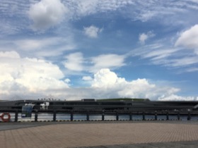 真夏の空を見上げ、大さん橋を遠くに眺めながら、