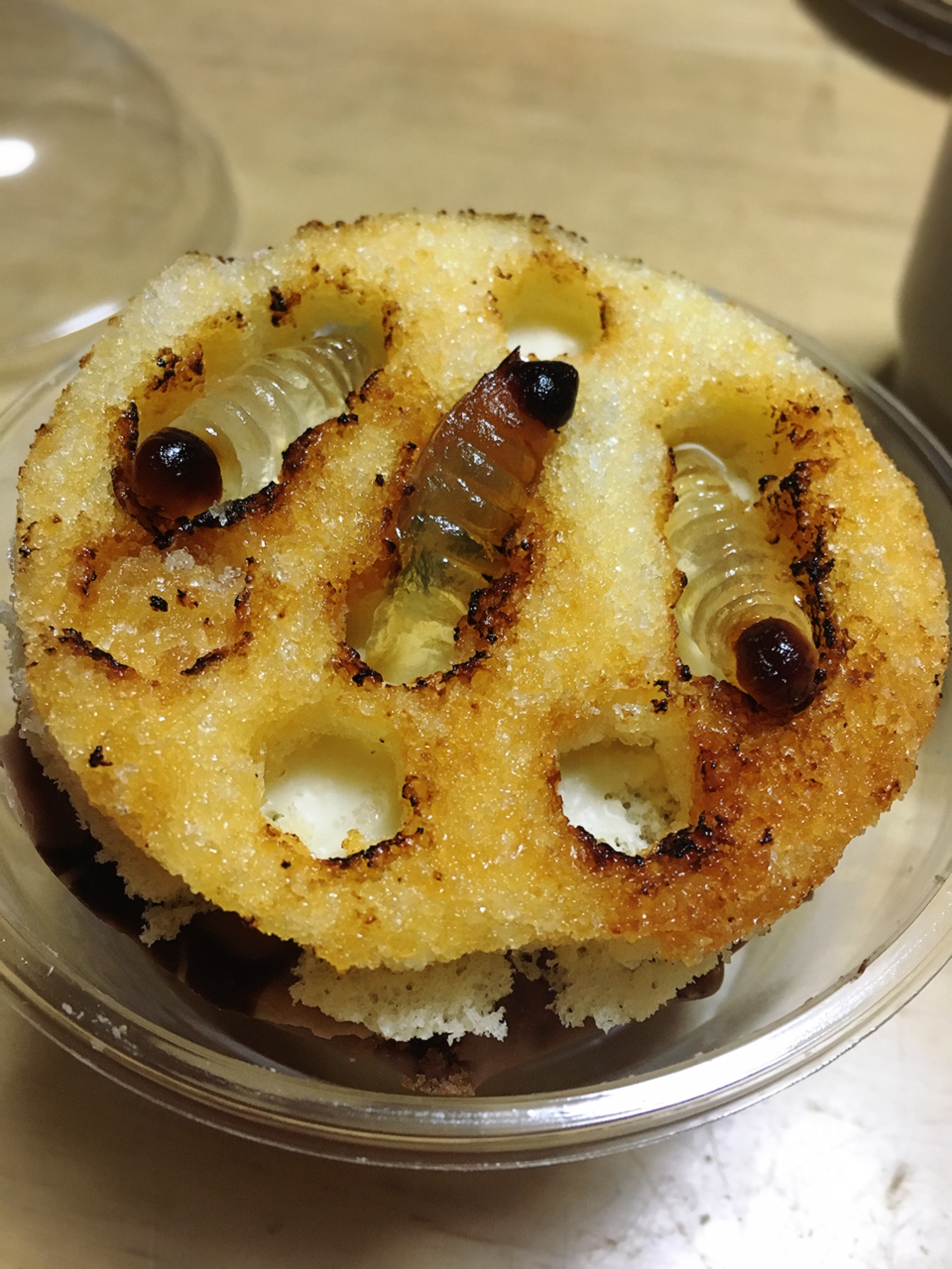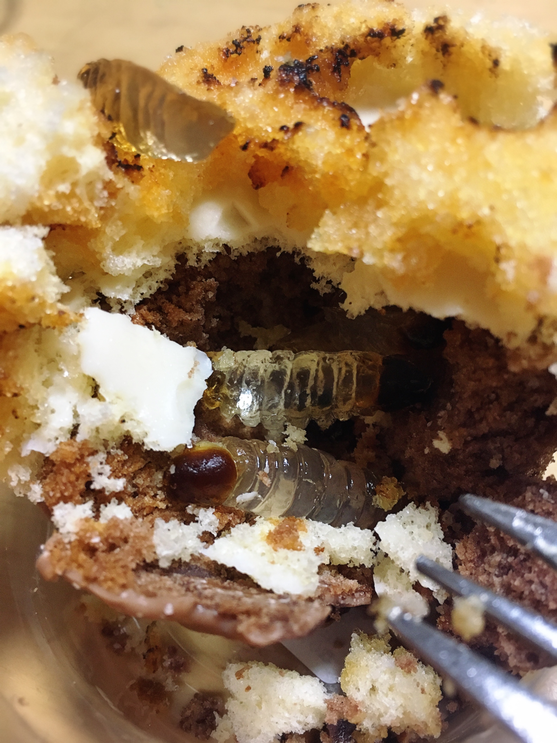 ケーキの中にも幼虫がちょろっと入ってます。