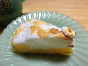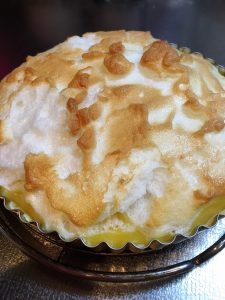バターなしのパイ生地の上に、レモンカード、メレンゲのせてやきました。