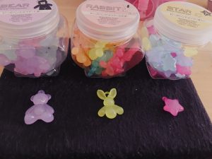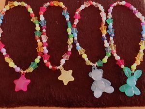 ダイソーで見つけたビーズがめっちゃかわいいから、それをチャームにしたブレスレット。