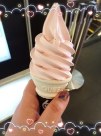食後に、「いちごみるく」のソフトクリーム食べたょ♪