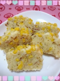 ぉうちに、米粉があったから、「ツナとコーンの蒸しパン」作ってみた!