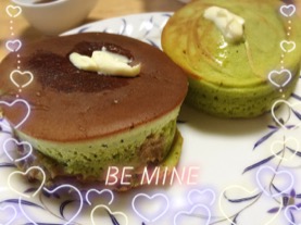 この前セリアで買った、ホットケーキが厚く焼ける型を使って、抹茶のホットケーキ作ってみたよ~。