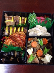 「鶏の照り焼き」、「牛たたきのカイワレ巻き」、「豚の味噌漬け」、「えびの鬼がら焼き」、「昆布巻き」、「筑前煮」です~(^-^)