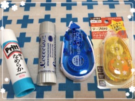 (※左からピット糊、ココイーナ、ドットテープのり、スター柄テープのり)