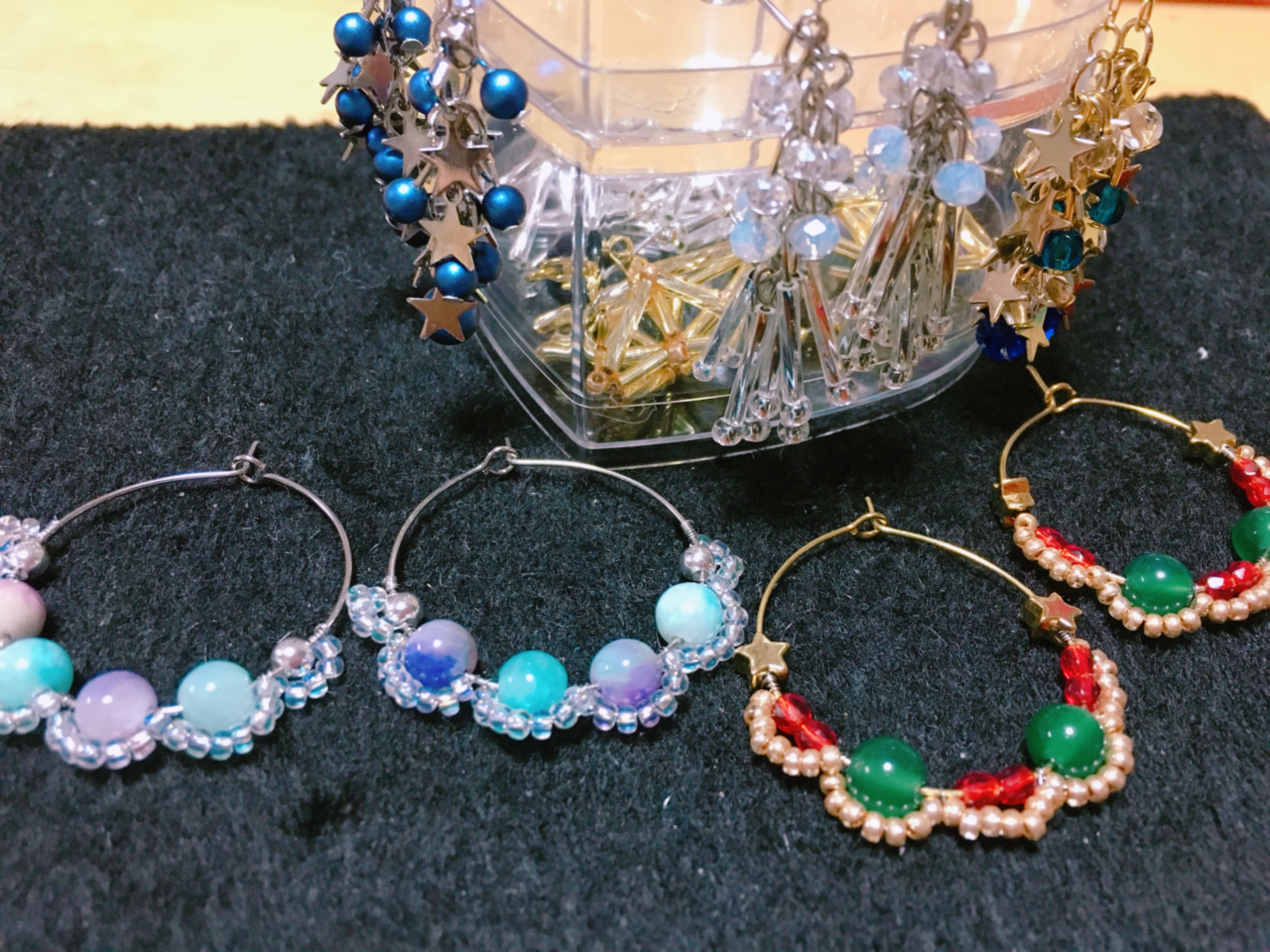 そして作ったアクセがこちら。ぜんぶ、ピアスです☆
