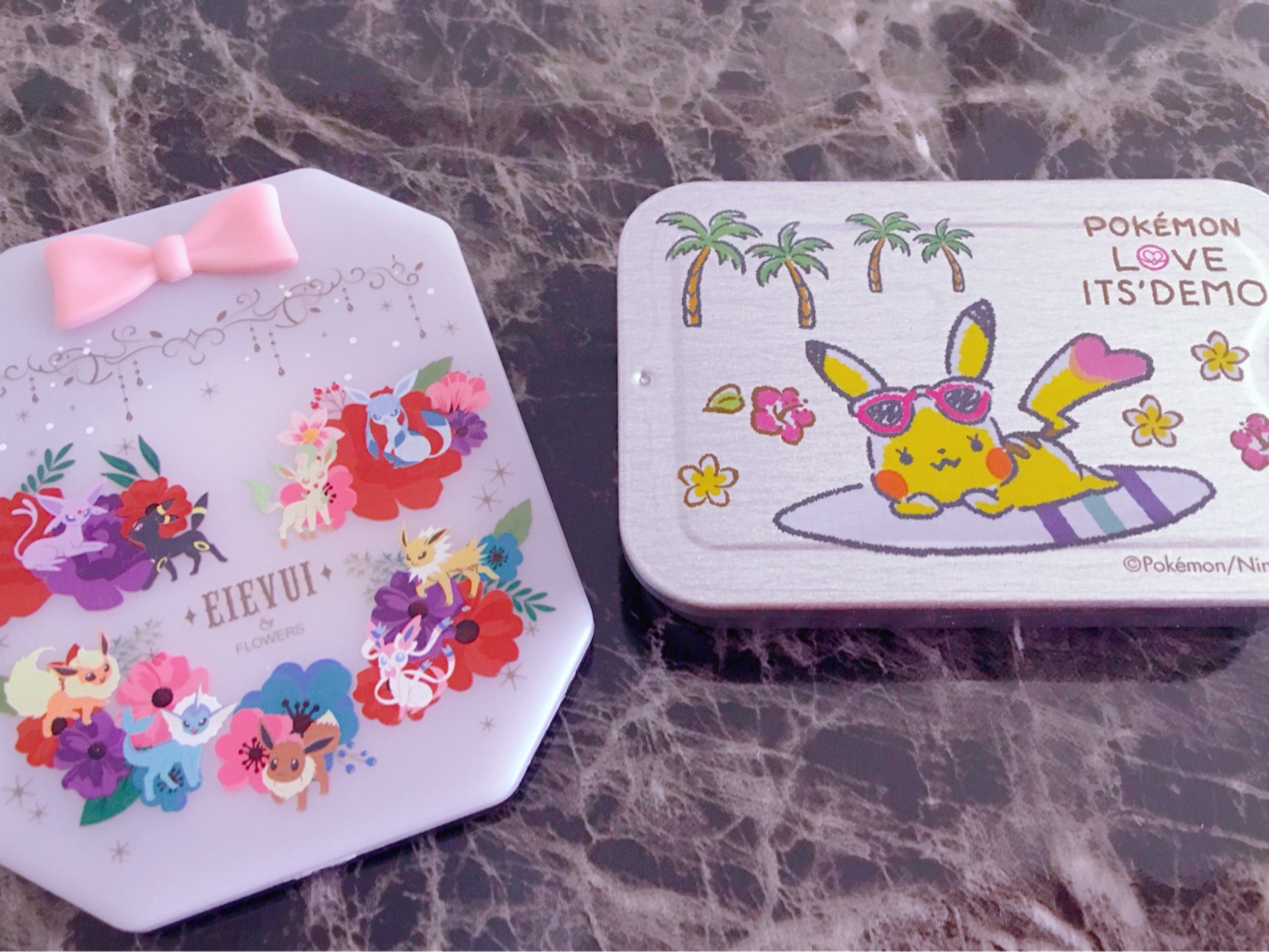 左が、前のイッツデモ×ポケモンコラボの時の缶ケースと、