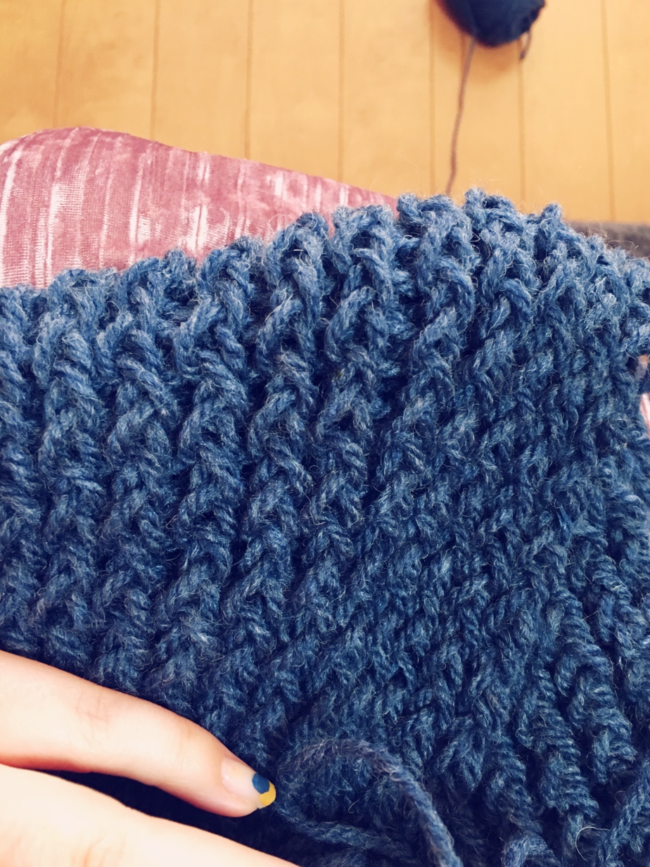 せっせと編み物。マフラー編んでるとこです~。