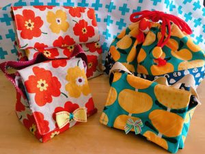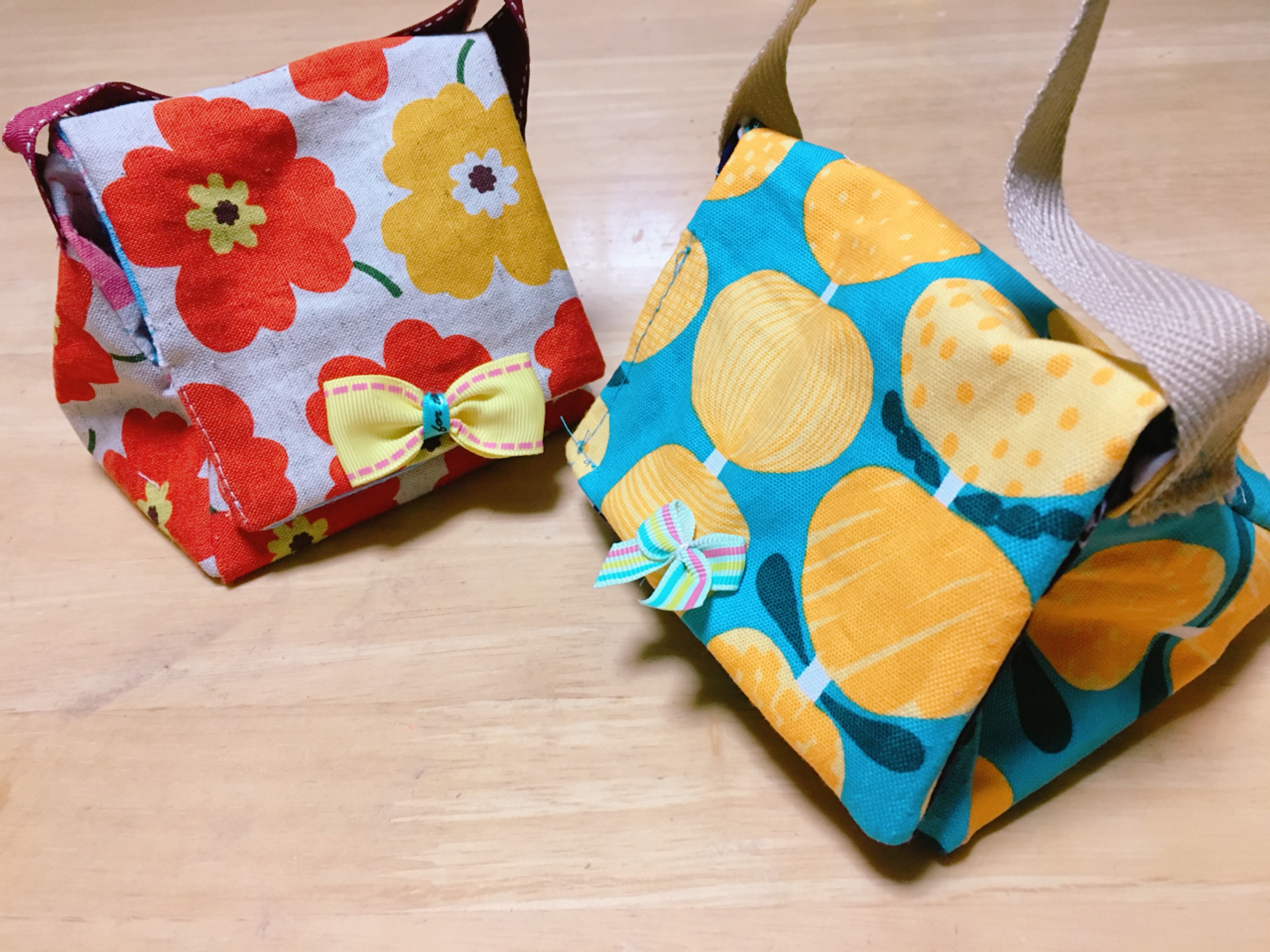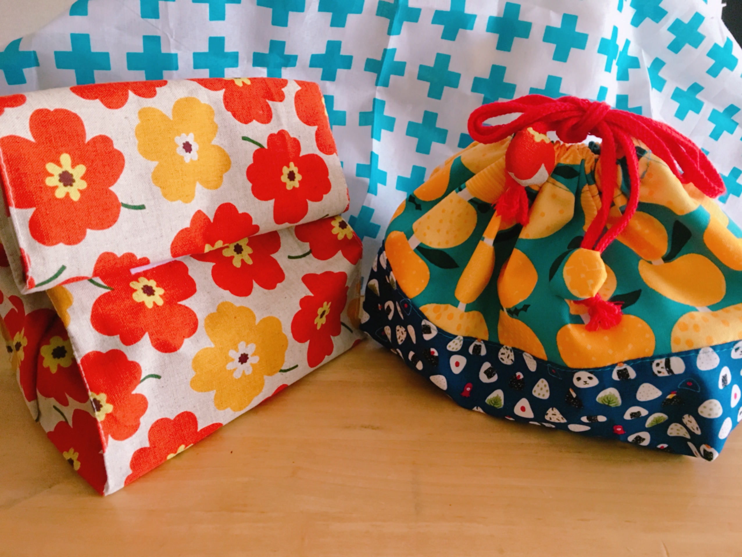 ついでに、お弁当を入れる「ランチバック」と「巾着タイプ」も作りました~。