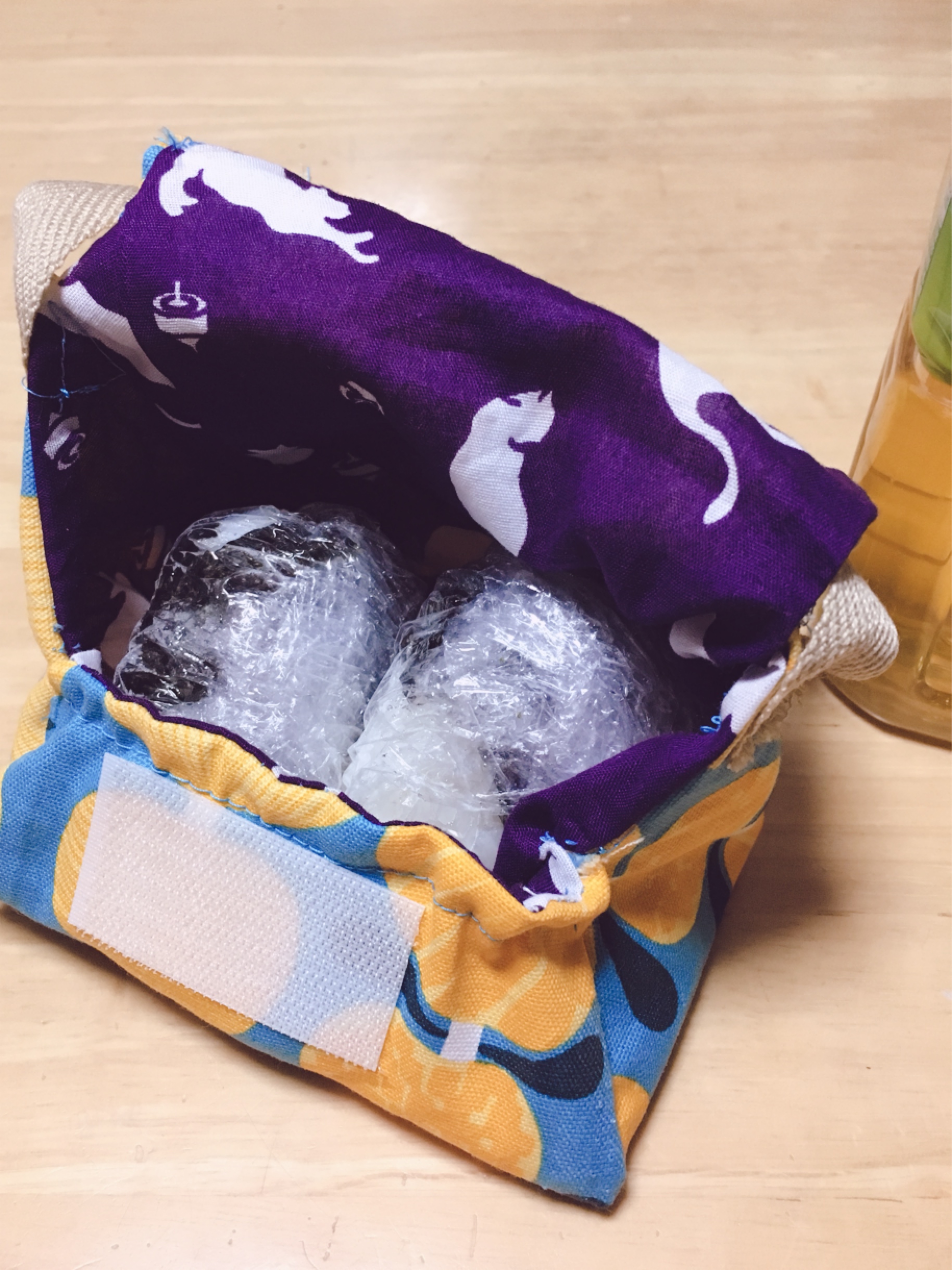 中ゎ、おむすびが2個いれられます。もちろん、コンビニのおむすびもはいりますよ~。