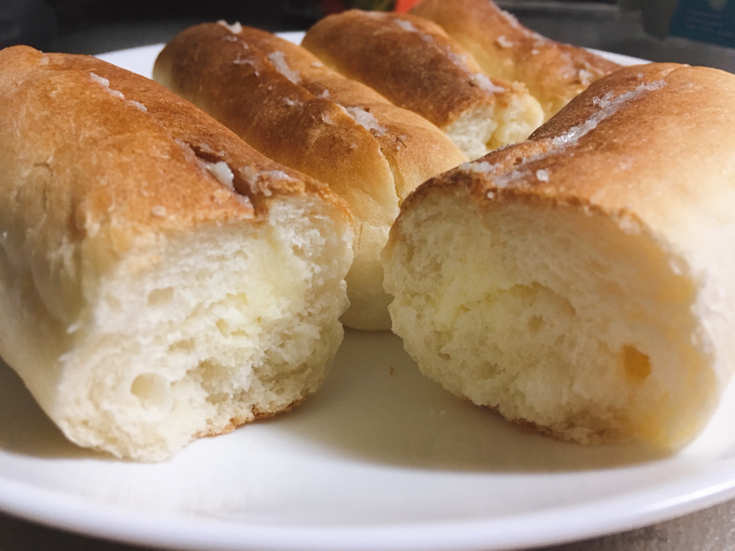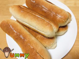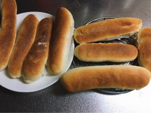 真ん中に切り込みを入れて、ミルクシュガーバターを挟んだ、「ミルクフランスパン」。
