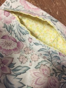 裏地の小花模様の生地は、わたしが小学生の頃に、
