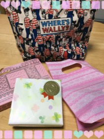 後ろのバックゎ、友人がチョコを入れてくれたミニトートなんだけど、