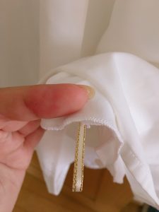 パンツの裾部分の内側の目立たない場所に、リボンでループを作っておいて・・。