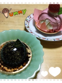 うちゎ、チョコのドームケーキ、友人はイチゴのモンブラン。