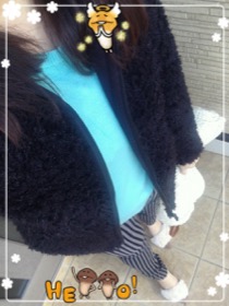 モコモコアウター+ニット+ストライプスキニー+ファーパンプス。
