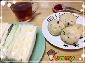 きゅうりとたまごのサンドイッチと一緒にたべたよ~(^-^)